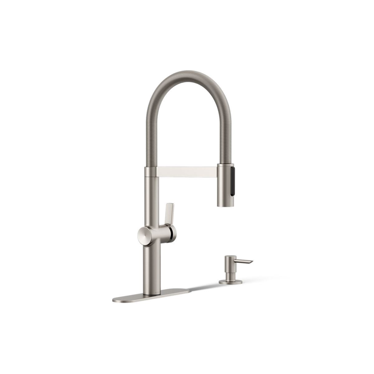 KOHLER Koi Pre-Rinse Spring Vibrant Stainless Single Handle Deck-mount Pull-down Kitchen Faucet with Sprayer (Includes Deck Plate) (Includes Soap Dispenser)