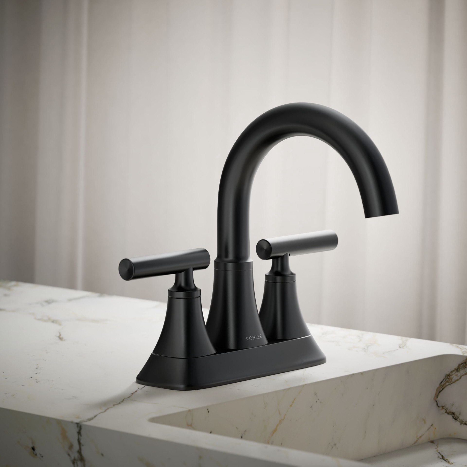 KOHLER Rill Matte Black 4-in centerset 2-handle WaterSense Mid-arc Residential Handle Bathroom Sink Faucet with Drain