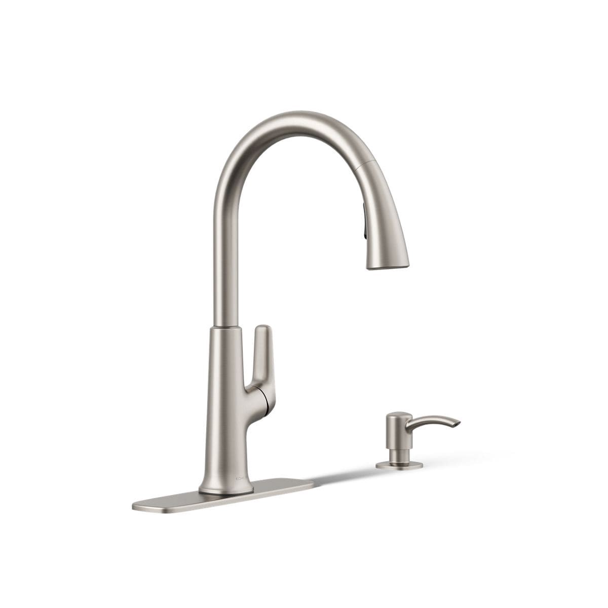 KOHLER Volt Vibrant Stainless Single Handle Deck-mount Pull-down Kitchen Faucet with Sprayer (Includes Deck Plate) (Includes Soap Dispenser)