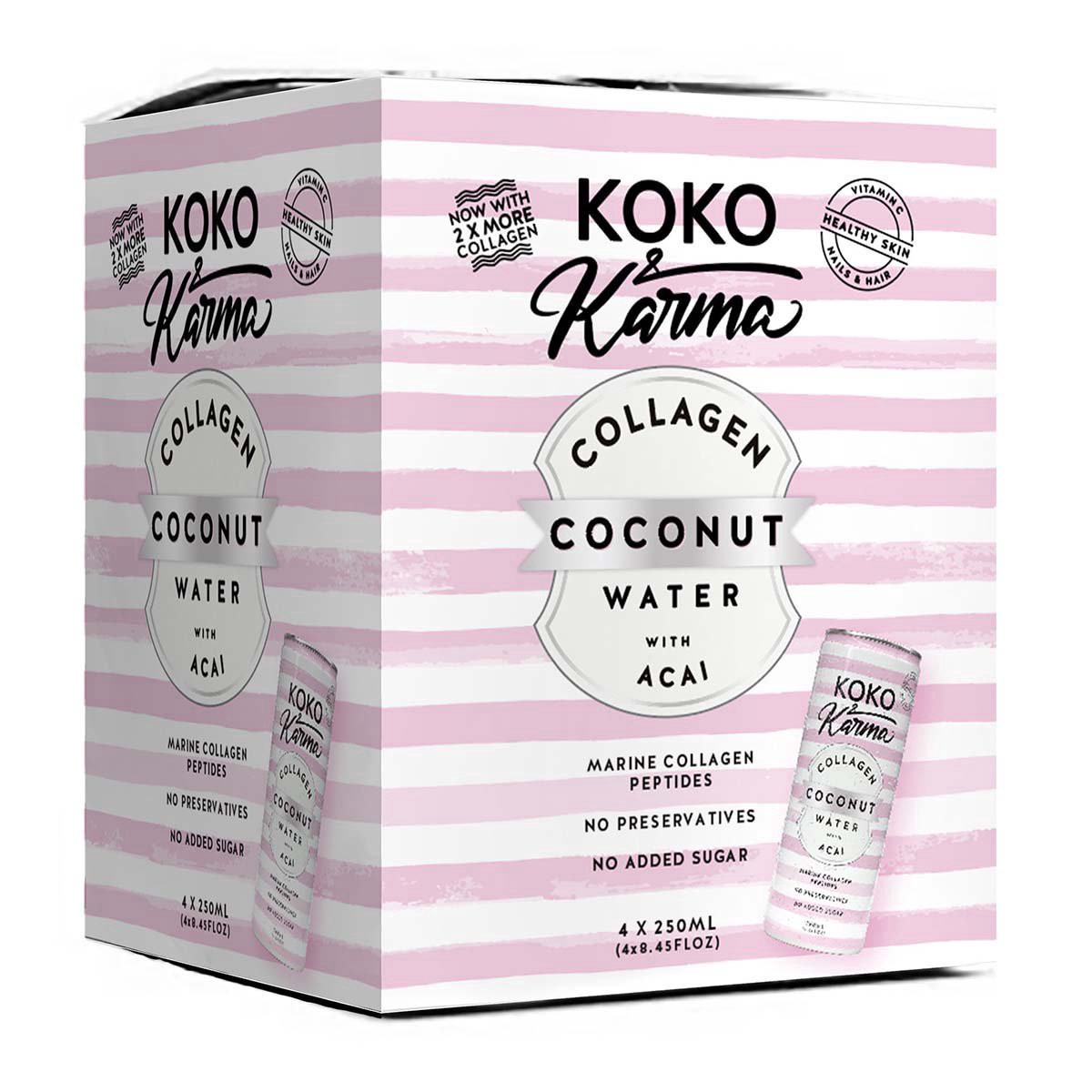 Koko & Karma Collagen Coconut Water with Acai 4 pk Cans