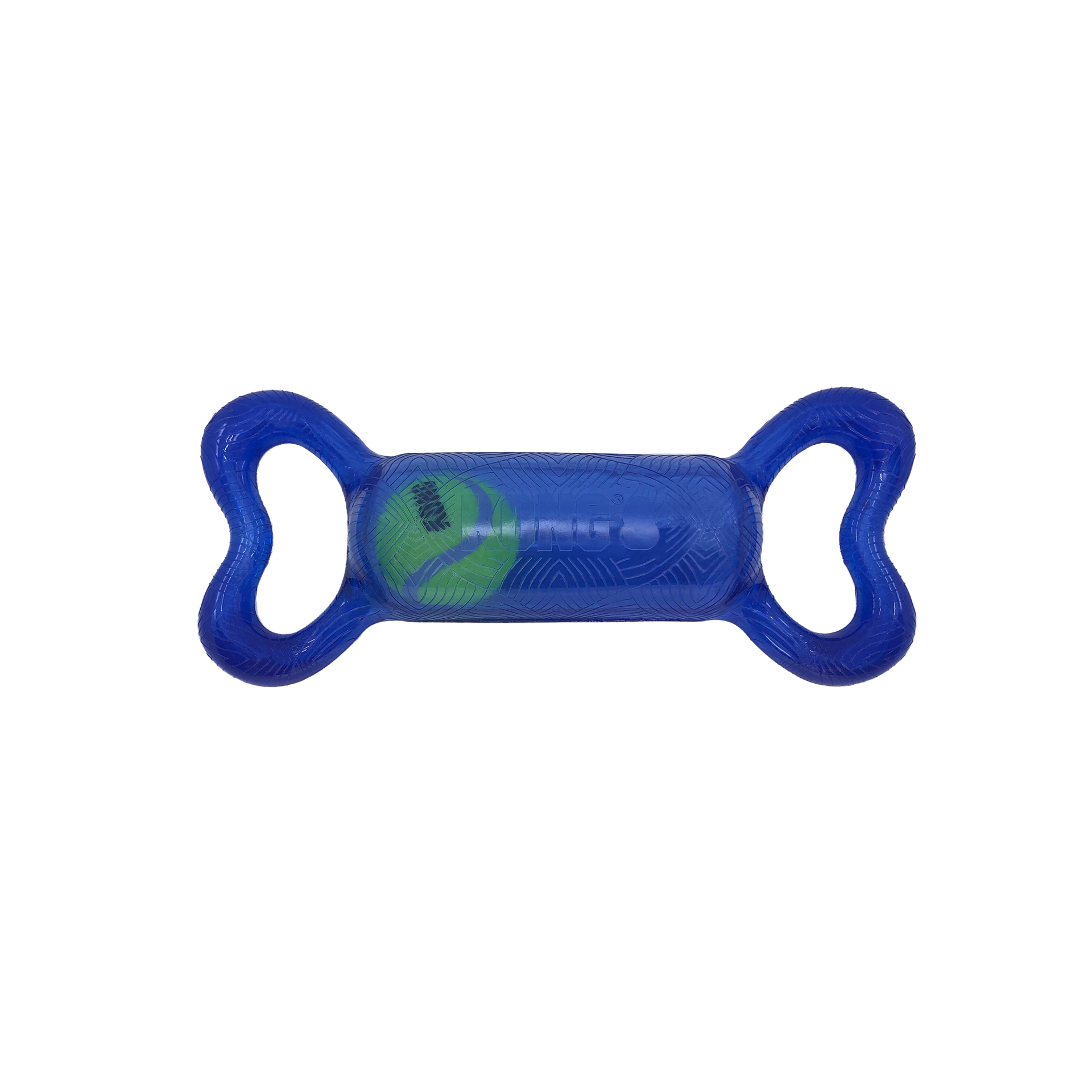 KONG Jumbler Tug Bone''s rolling interior tennis ball and loud squeak spark tug-and-fetch fun. This durable toy is built to last through tough play with two handles that make tugging and shaking easy …
