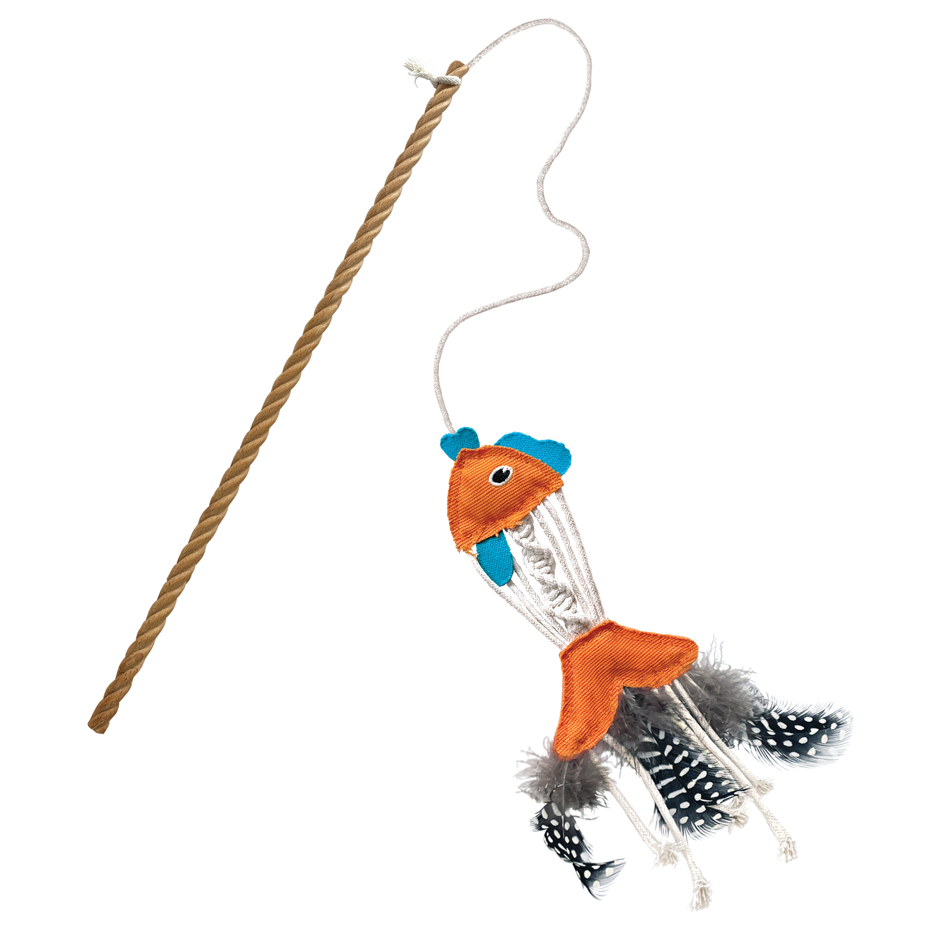 KONG Naturals Teaser Fish lures cats to play with a dangling fiesta of natural features that satisfy hunting instincts. Feathers flutter irresistibly for batting, the cotton canvas fish twists and tur…