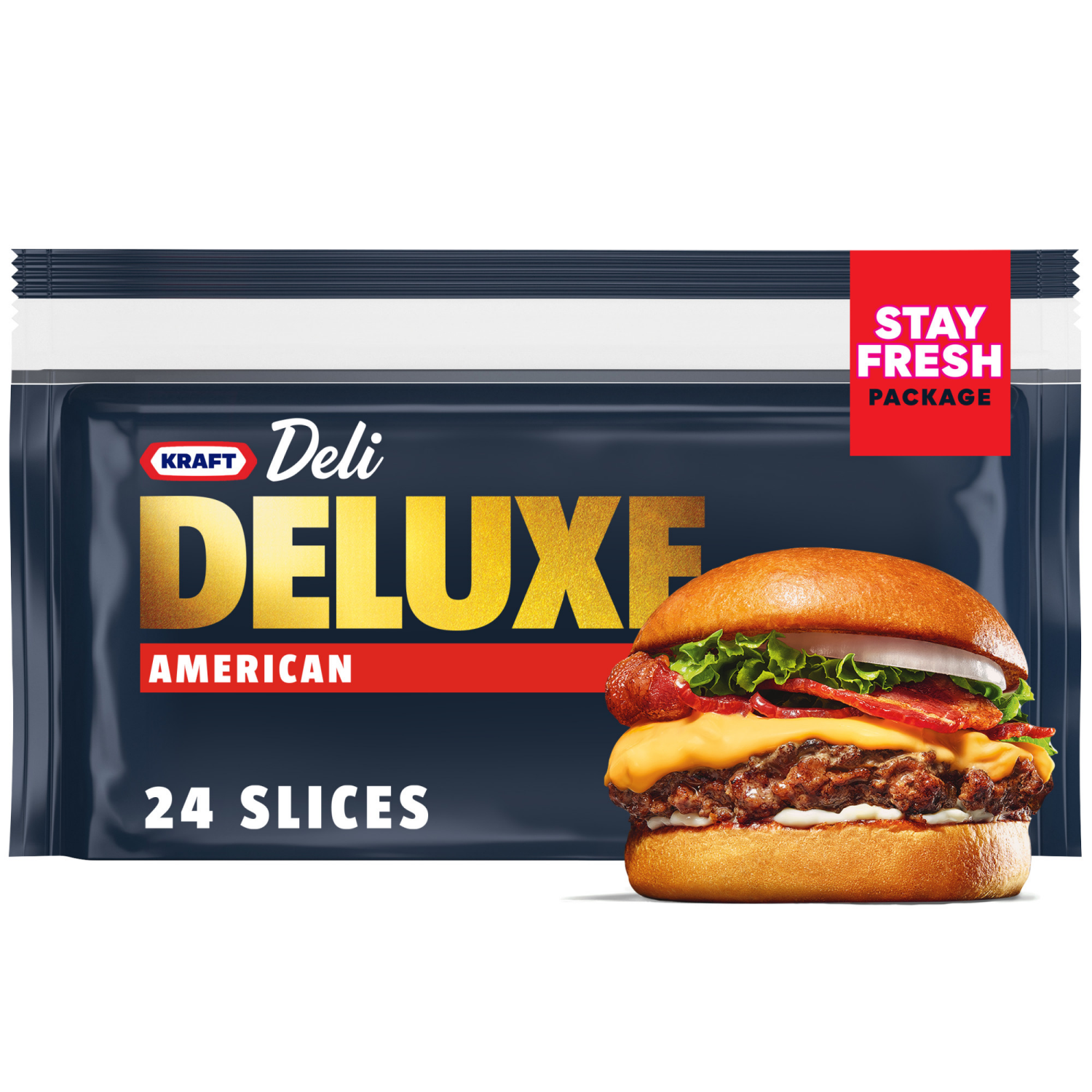 Kraft Deli Deluxe American Cheese Slices are creamy, rich and full of flavor. Enjoy our sliced American cheese with a mild, slightly tangy flavor and smooth texture that goes well with any meat or veg…