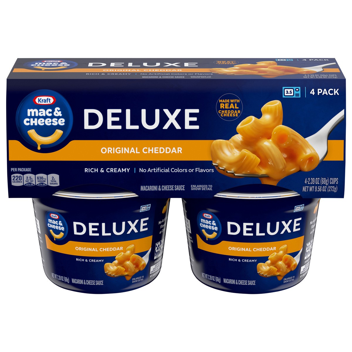 Stock up and help yourself to a cup of comfort with Kraft Deluxe Original Mac & Cheese Dinner Cups anytime the mood strikes. Our deluxe mac and cheese cups include rich, creamy cheddar cheese sauce an…