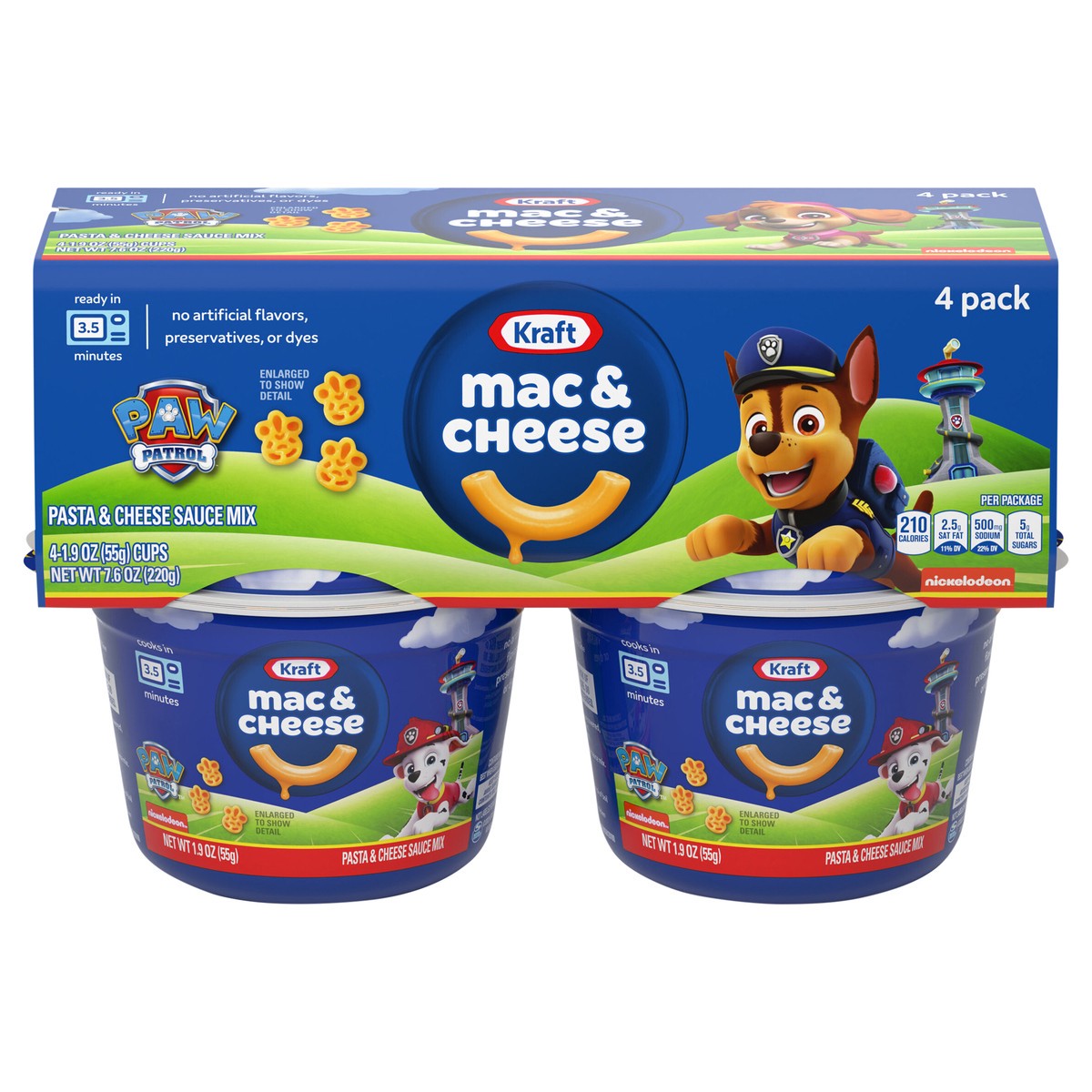 Kraft Mac & Cheese Macaroni and Cheese Dinner Easy Microwavable Dinner with Nickelodeon Paw Patrol Pasta Shapes, 4 ct Pack, 1.9 oz Cups