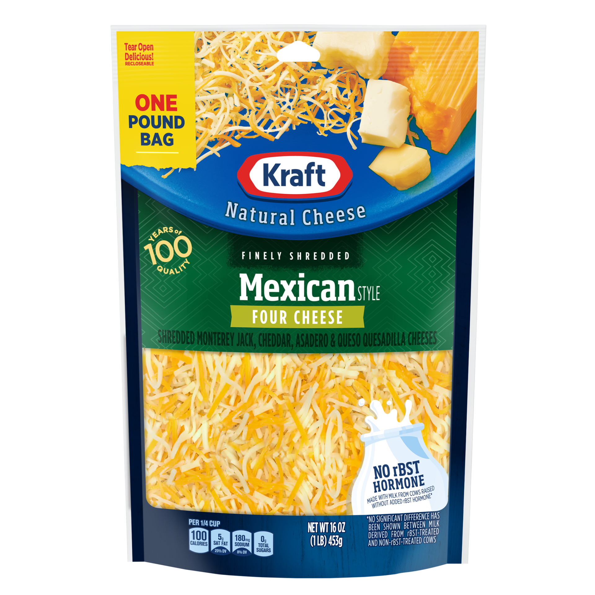 Kraft Mexican Style Four Cheese Shredded Cheese, 16 oz Bag