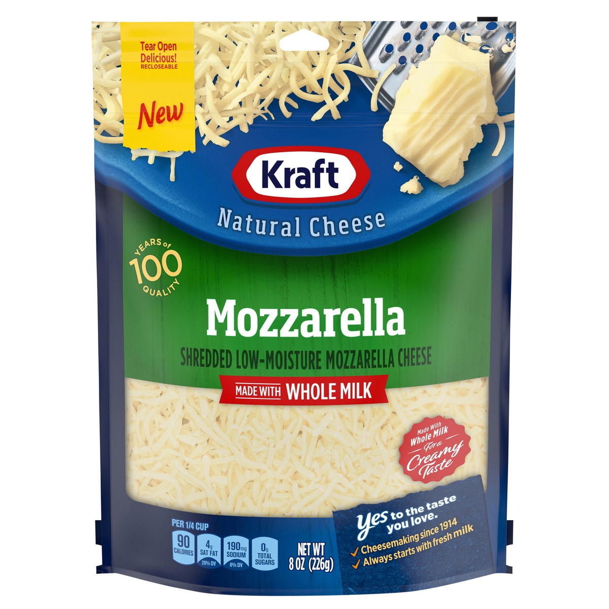 Kraft Mozzarella Shredded Cheese with Whole Milk, 8 oz Bag