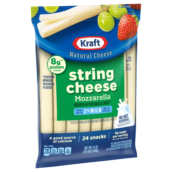 Kraft Natural Mozzarella String Cheese Sticks are a convenient snack to satisfy the cheese lovers in your family. Perfectly portioned, these low-moisture and part-skim mozzarella sticks are an easy wa…