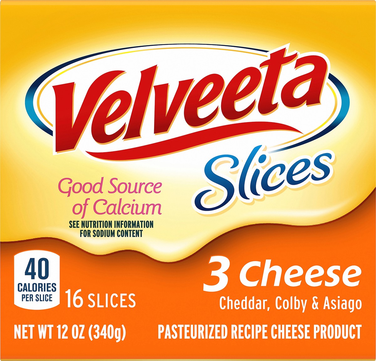 40 calories per slice. Good source of calcium. See nutrition information for sodium content. Pasteurized recipe cheese product. Myfoodfamily.com. Scan or call 800-634-1984. For more food information. …