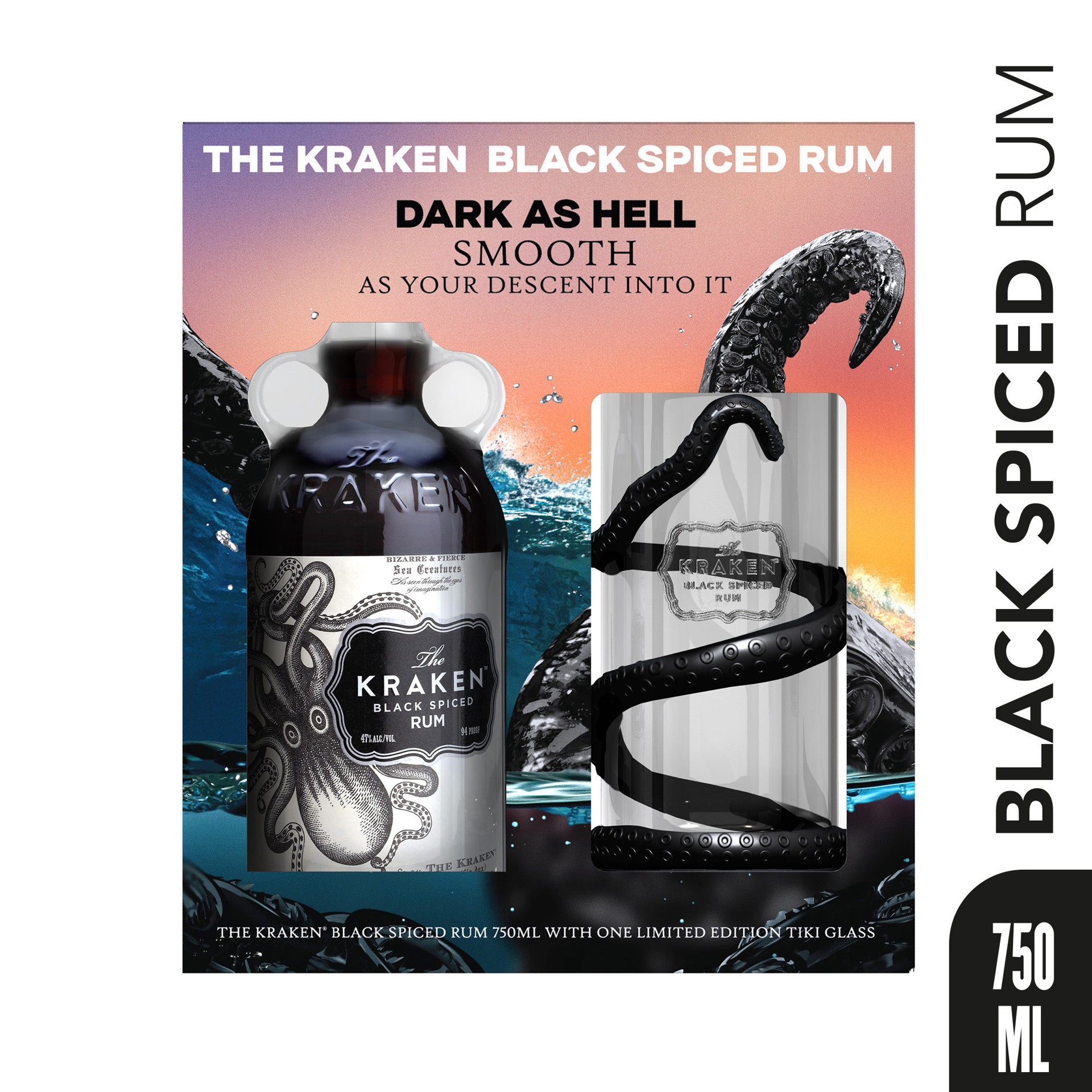 Kraken Black Spiced Rum 94 Proof with Tiki Glass (750 ml)