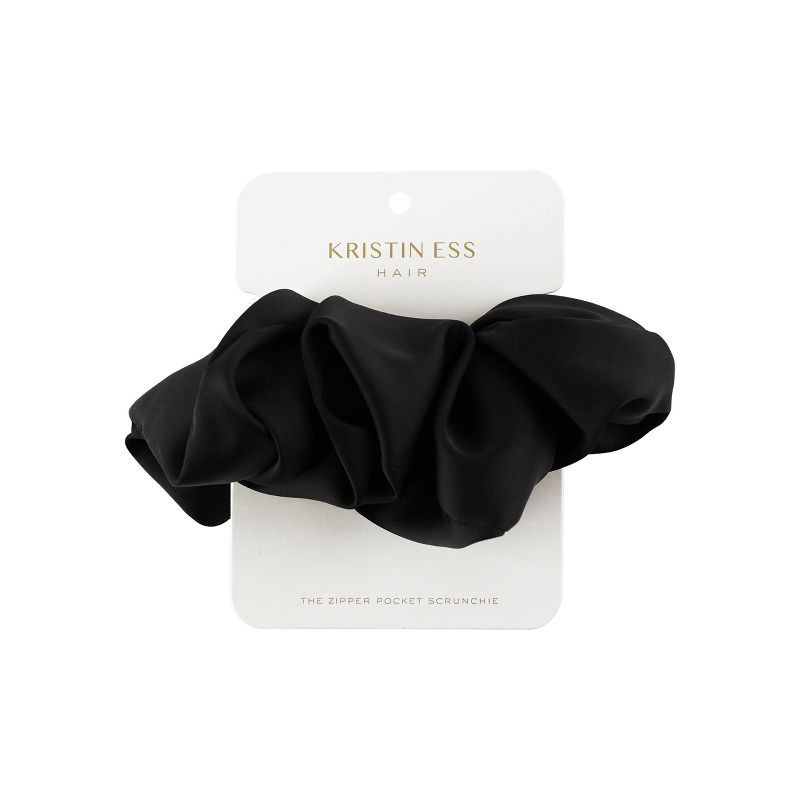 The Zipper Pocket Scrunchie from Kristin Ess Hair is a chic, satin scrunchie that has a hidden zipper pocket that's perfect for a house key, a mask or some cash! This hair accessory is great to wear t…