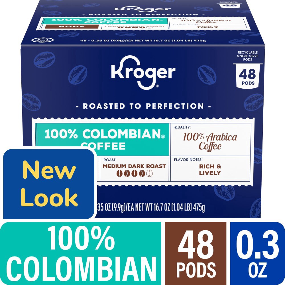 Kroger® 100% Colombian Medium Dark Roast Coffee Pods offer a rich, bold taste. Containing some of the finest coffee beans, each coffee pod produces a delicious cup of coffee. Convenient, these pods ma…