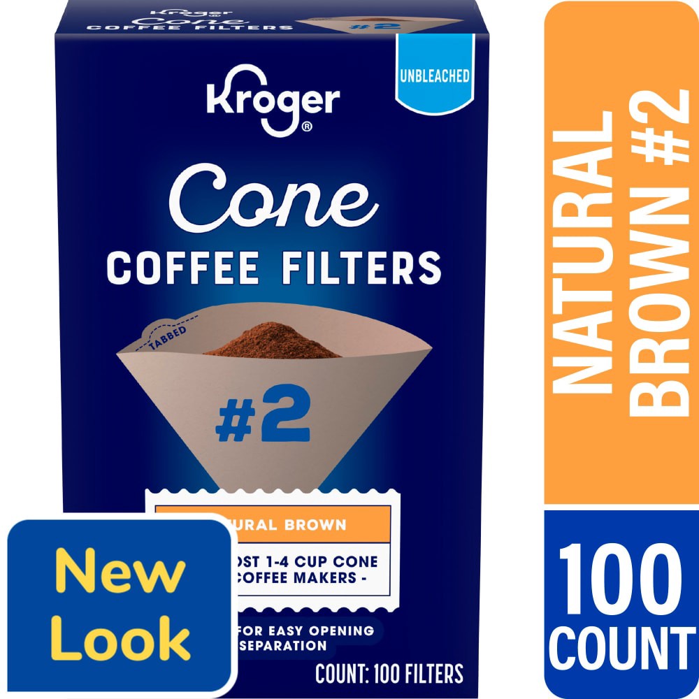 Kroger® #2 Unbleached Natural Brown Cone Coffee Filters bring out the best in your brew! These filters are the perfect partner for Kroger® and Private Selection® ground coffees. Mild, bold, smooth, co…