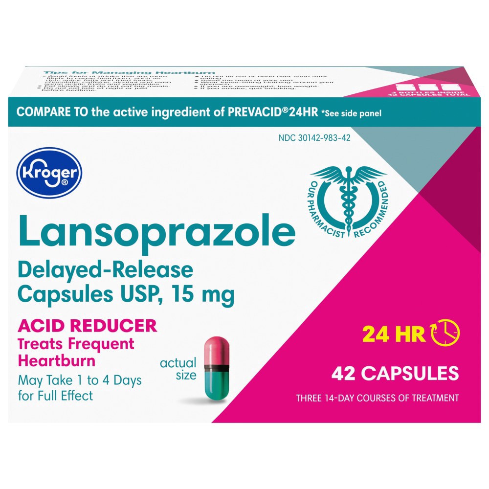 slide 5 of 6, Kroger 24 Hour Delayed-Release Lansoprazole Acid Reducer Capsules, 42 ct