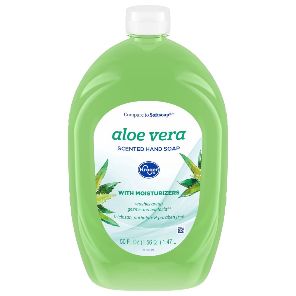 Kroger® Aloe Vera Scent Antibacterial Liquid Hand Soap Refill helps wash away germs and bacteriaˆ. Triclosan, phthalate, and paraben free, this is a liquid hand soap you can trust. With the active ing…