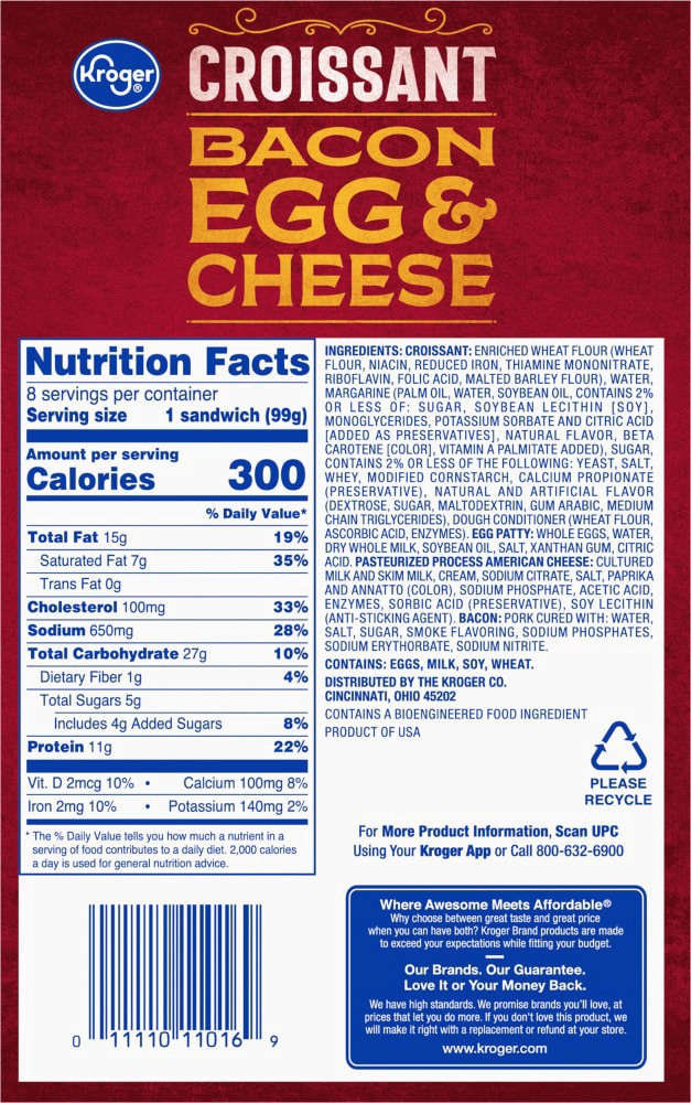 Kroger Bacon Egg and Cheese Croissant 8 Count