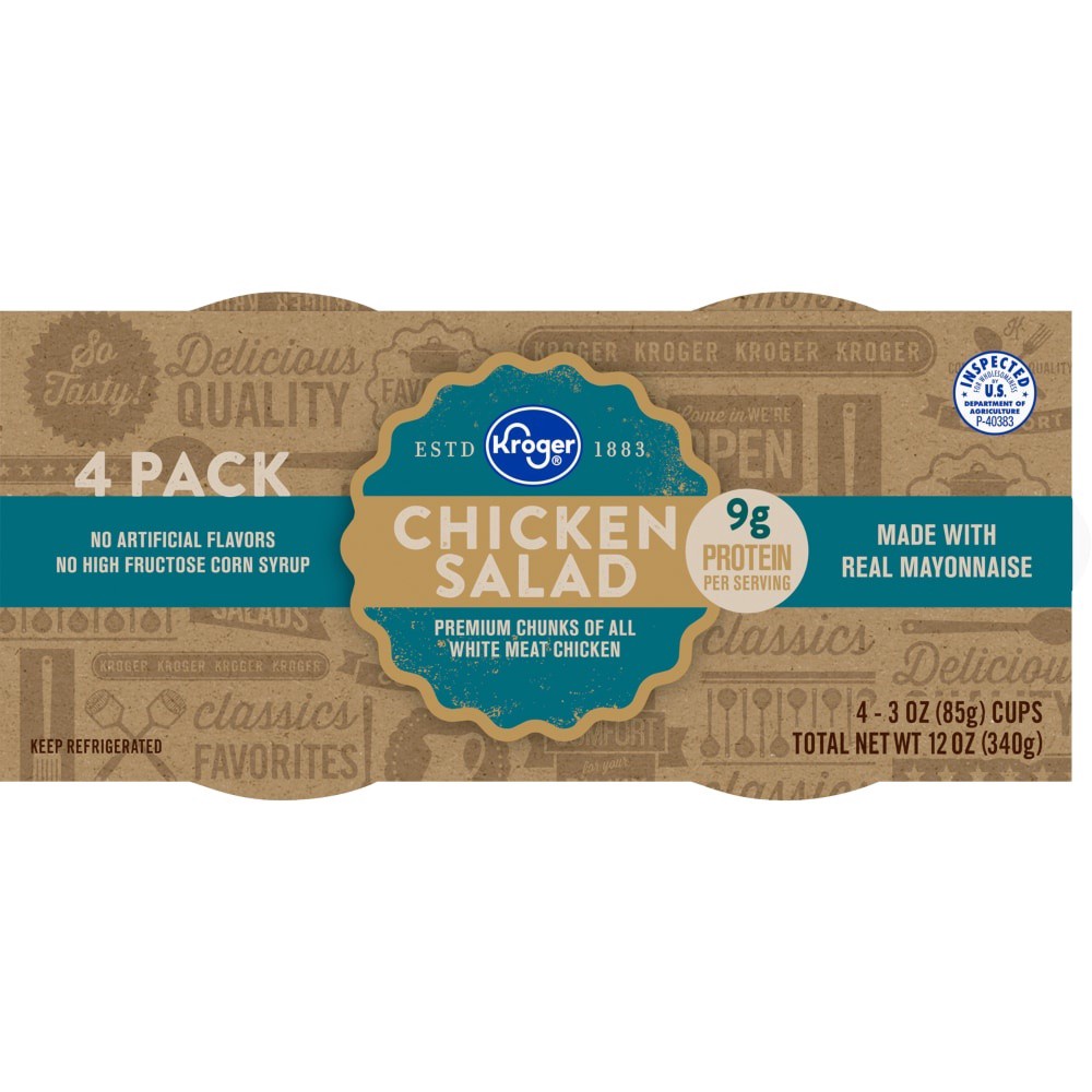 Kroger® Chicken Salad is a tasty meal packed with premium chunks of all white meat chicken! Enjoy every creamy, mouthwatering bite of chicken, mayonnaise, and crunchy celery. With 9g protein per servi…