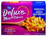 Complete with creamy cheddar cheese sauce & enriched macaroni. Per Serving: Calories - 310; total fat - 9 g; trans fat - 0 g; sodium -910 mg; sugars - 3 g. Vegetarian. Good source of calcium.