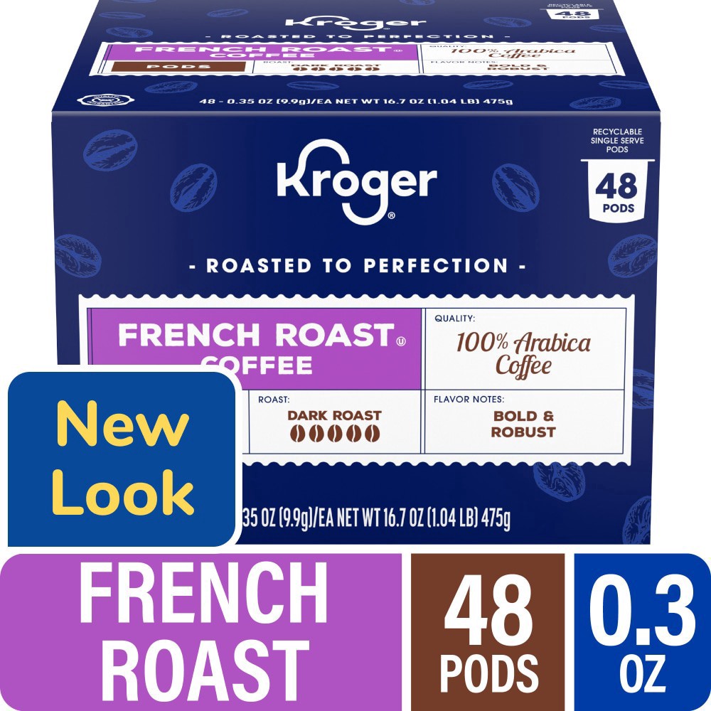Kroger® French Roast Dark Roast Coffee Pods are a delight with every cup! Bold and robust, this dark roast truly shines. Each bean is selected for quality, then roasted for a rich, hearty flavor that …