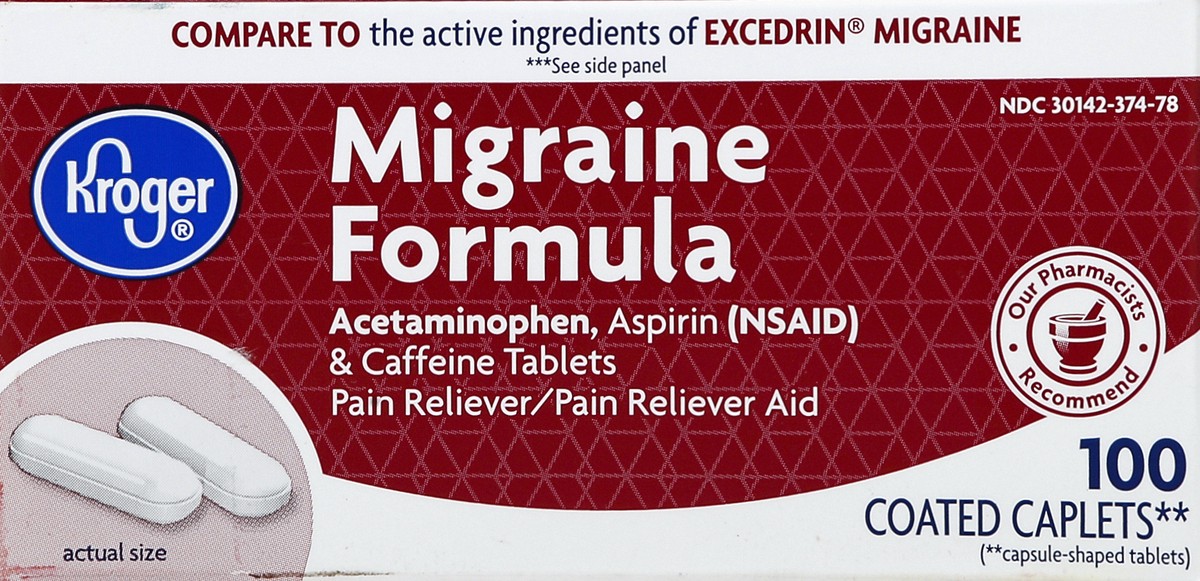 slide 1 of 1, Kroger Migraine Relief Acetaminophen Caplets, 100 ct