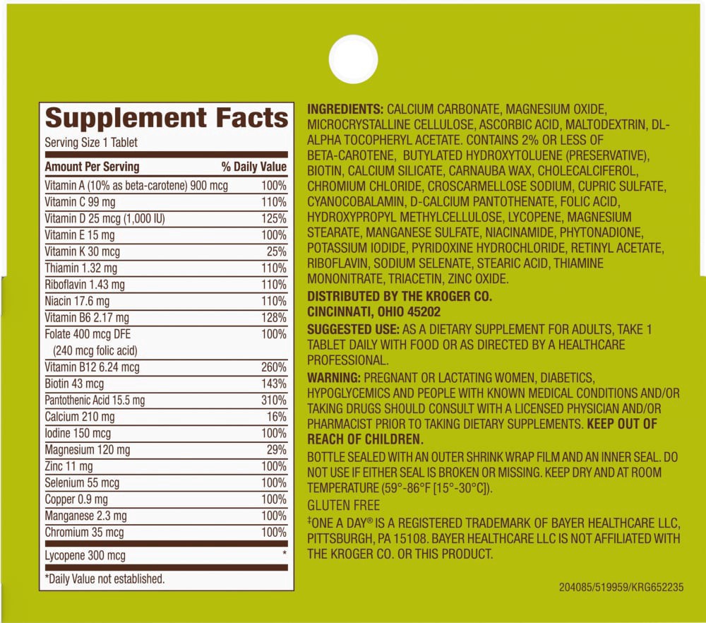 Kroger® Men's Multivitamin One Daily Tablets are an easy choice for men - supporting the body with minerals like calcium, biotin, magnesium, and zinc, and multiple vitamins, including vitamin D, vitam…