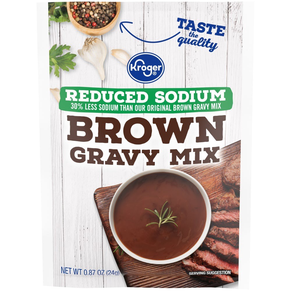 30% less sodium than our original brown gravy mix4 ServingsPer Serving: 20 Calories, 0.5g Total Fat, 210mg Sodium, 0g Sugars