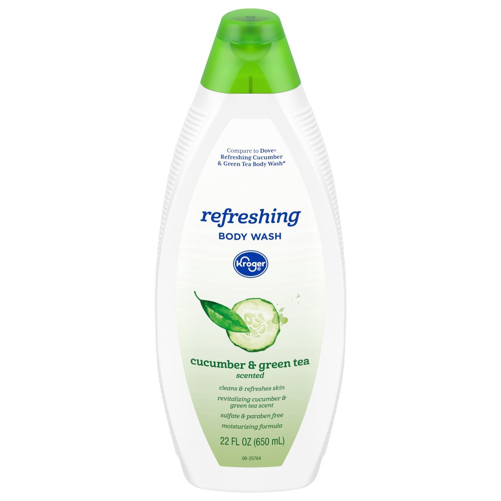 Kroger® Refreshing Cucumber and Green Tea Scented Body Wash cleans and refreshes skin with a revitalizing green tea and cucumber scent! Enriched with glycerin, this moisturizing formula is sulfate and…