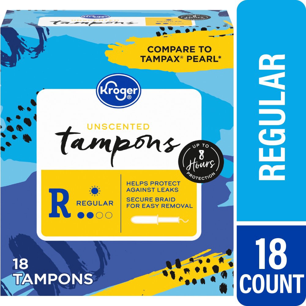 Kroger® Tampons Regular Unscented offers up to 8 hours of protection, keeping you comfortable and worry-free. The plastic applicator features a rounded and smooth glide tip for comfortable usage, and …