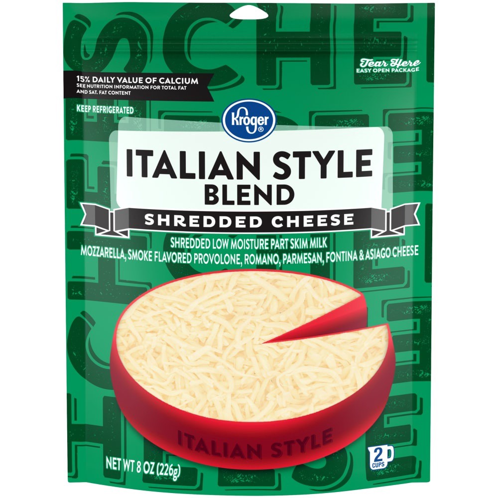 Kroger® Italian Style Blend Shredded Cheese offers a hearty mix of mozzarella, smoke flavored provolone, Romano, Parmesan, fontina, and Asiago cheeses. This dairy blend is a good source of calcium and…