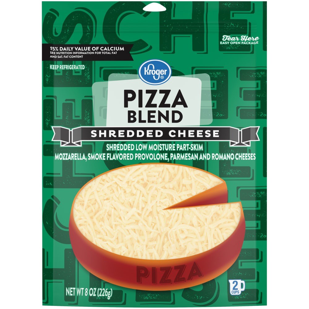 Kroger® Shredded Pizza Blend Cheese offers a delicious blend of mozzarella, smoky provolone, Parmesan and Romano in one handy bag. This natural cheese adds creamy indulgence to your pizza nights. It's…