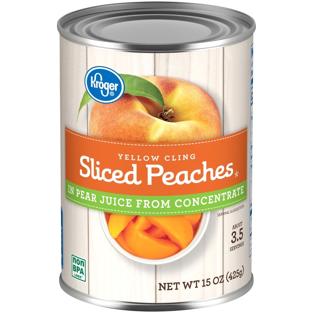 Kroger® Canned Yellow Cling Sliced Peaches in Pear Juice bring you delicious, juicy peaches picked at peak ripeness. Packed with vitamin C and immersed in pear juice concentrate with no added sugar, y…