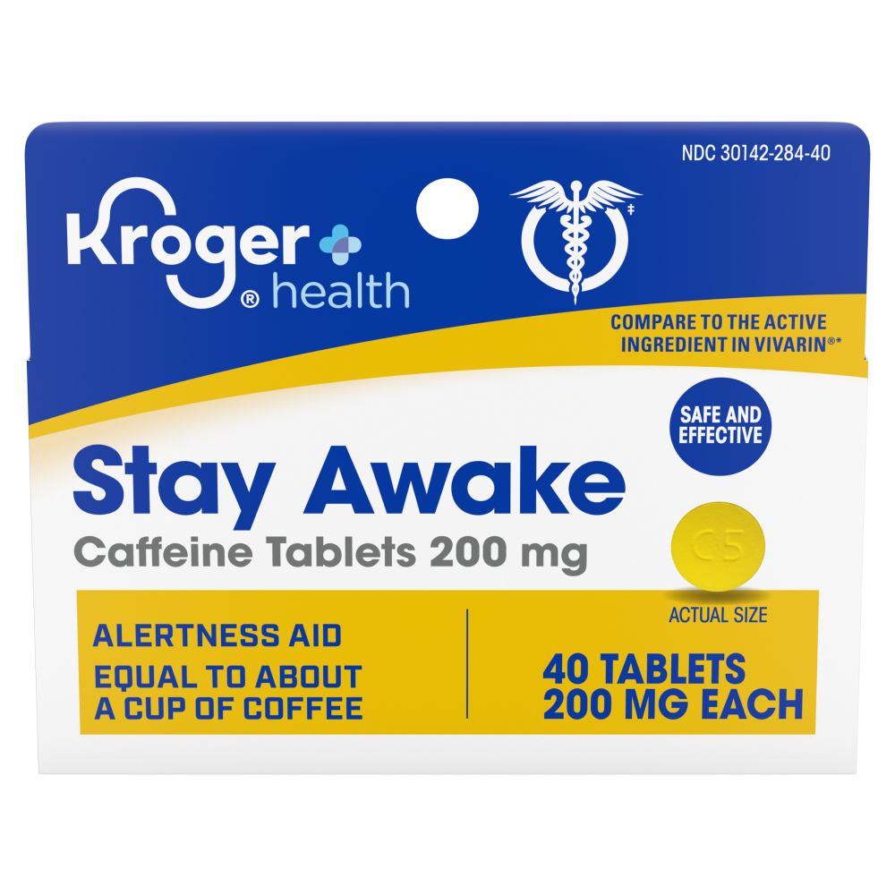 KrogerĀ® Stay Awake TabletsCaffeine Alertness AidHelps Restore Mental Alertness or wakefulness when experiencing fatigue or drowsiness