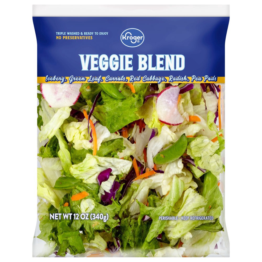 Iceberg Lettuce, Green Leaf Lettuce, Carrot, Red Cabbage, Radish, Peas Pods.