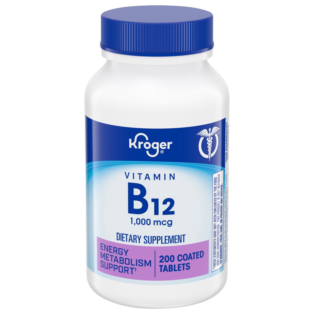 Kroger® Vitamin B12 Coated Tablets support energy metabolism.* Vitamin B12 is essential for normal formation of blood cells and contributes to the health of the nervous system.* In addition Vitamin B1…
