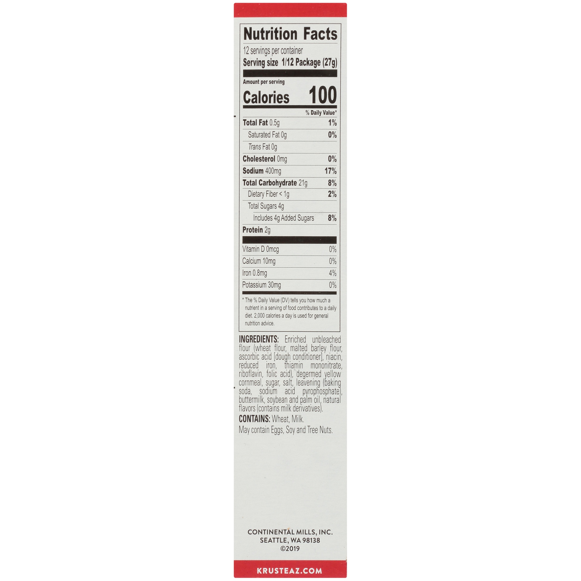 Enriched Unbleached Flour (Wheat Flour, Malted Barley Flour, Ascorbic Acid [Dough Conditioner], Niacin, Reduced Iron, Thiamin Mononitrate, Riboflavin, Folic Acid), Degermed Yellow Cornmeal, Sugar, Sal…