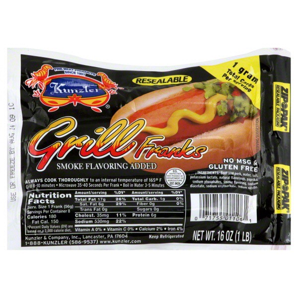 slide 1 of 1, Kunzler Grill Franks, 1 lb