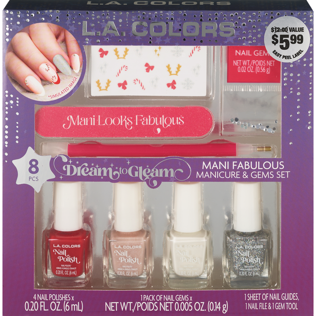 L.A. Colors LA COLORS L.A. Colorsâ 8 Pcs Asstd.Xmas 2024 Manicure & Gems Set