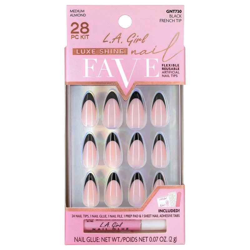 Bring salon-style elegance to your fingertips with the L.A. Girl Luxe Shine Nail Fave - Black French Tip. These medium almond-shaped nail tips feature a sleek black French tip design for a bold, sophi…