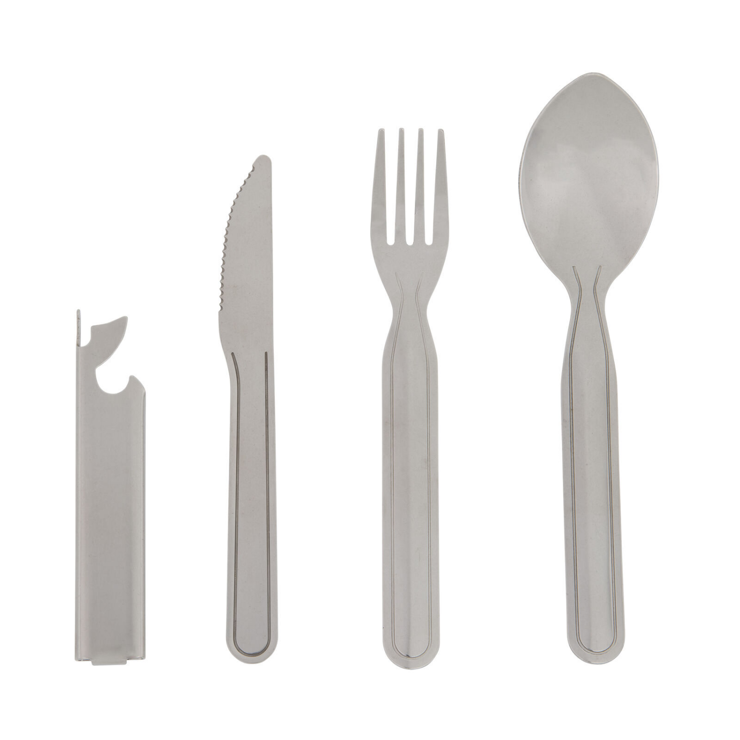This Lake & Trail Camper Utensil Set includes a fork, spoon, bottle opener, and utility knife. These durable, stainless steel utensils and tools wont rust or bend, even with frequent use. The fold-up …