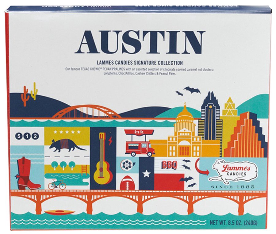 The Lammes Candies Signature Collection includes their famous Texas Chewie Pecan Pralines with an assorted selection of their most popular chocolate confections. The box was inspired by a love for Aus…