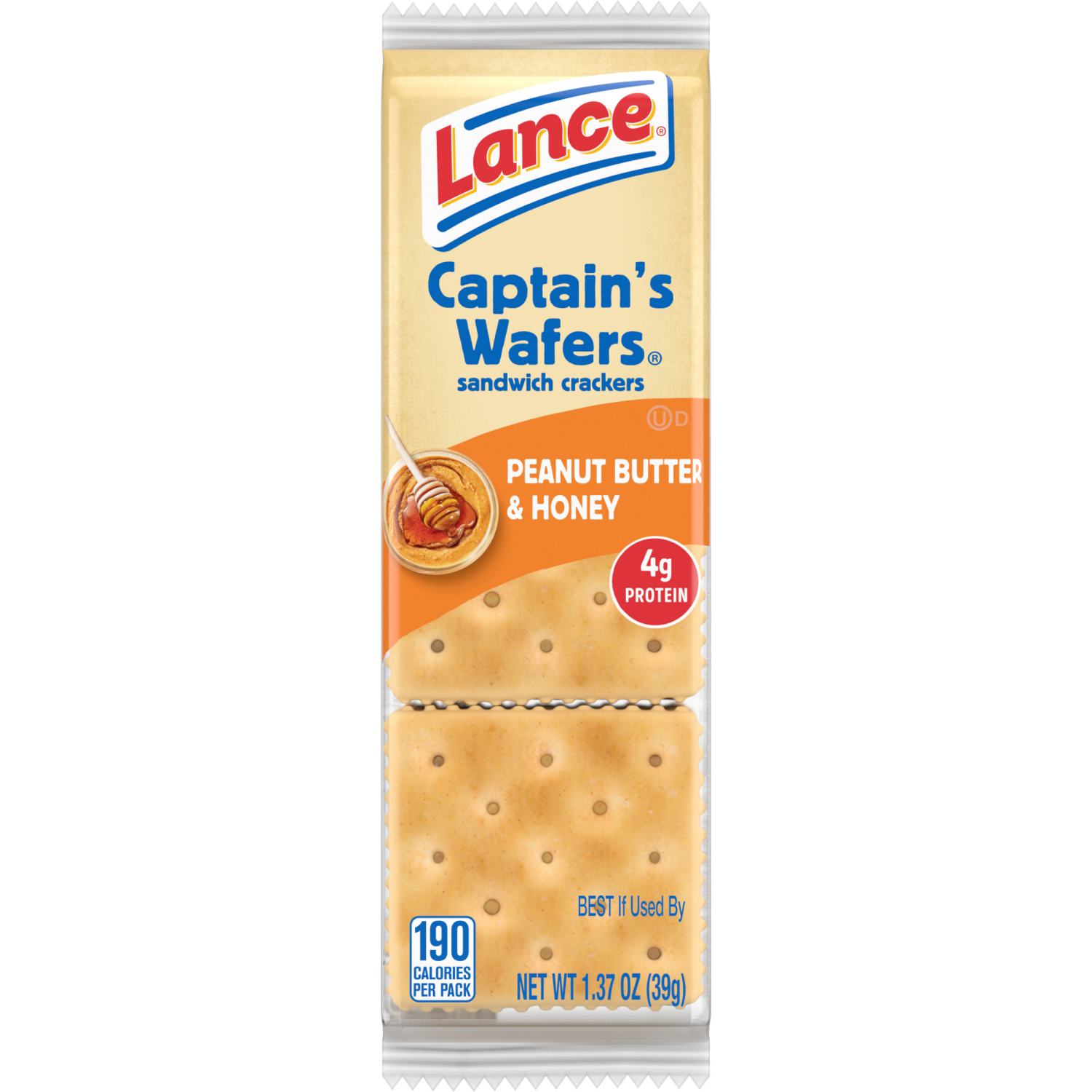 Lance Captain's Wafers Peanut Butter and Honey filled Crackers make a wonderful snack. They feature two of our classic Captain''s Wafers with a tasty peanut butter and honey filling in between. The ho…