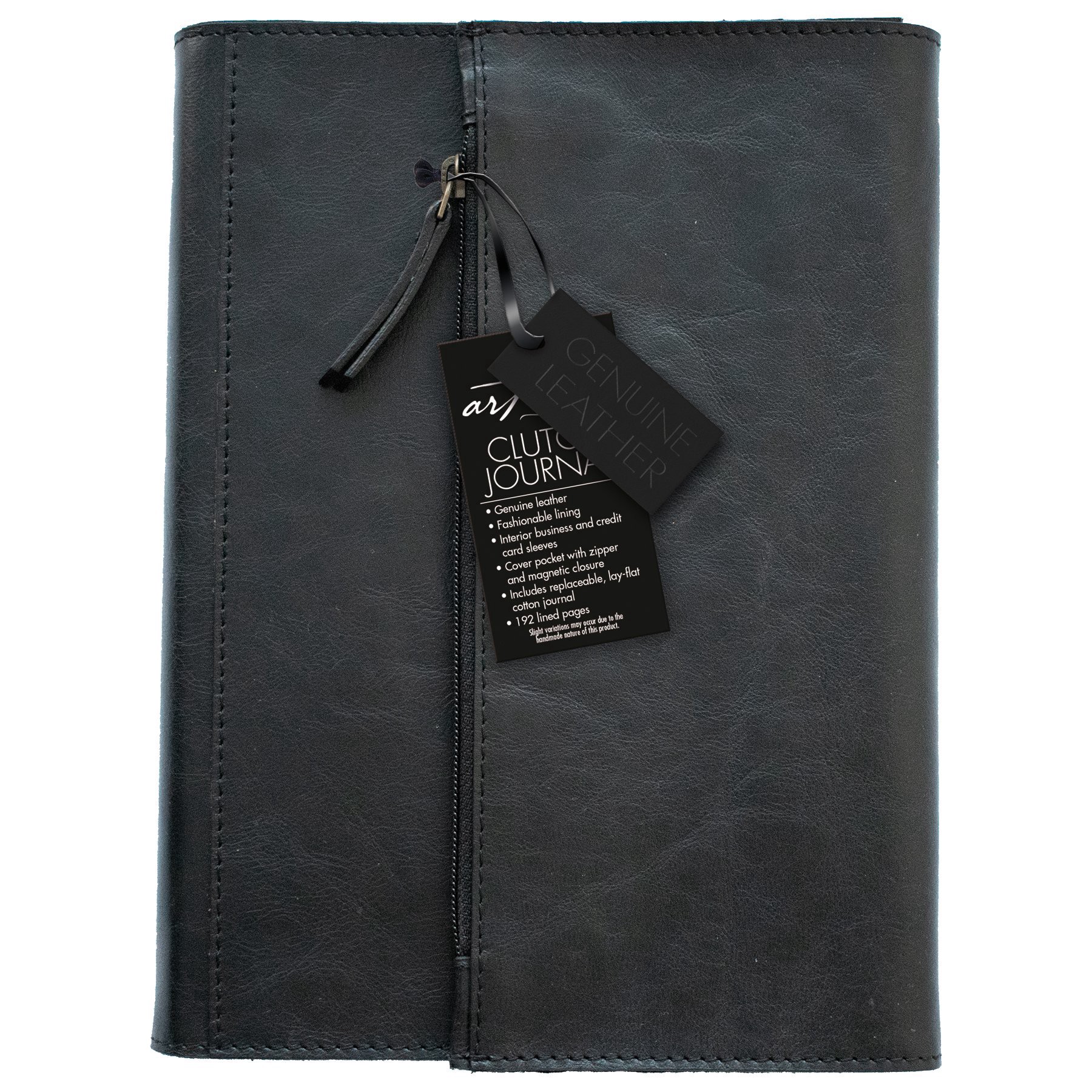A luxurious, genuine leather clutch cover holds and protects your journal, and includes a zipper pocket on the cover perfect for your favorite writing tools. With interior sleeves for business and cr…