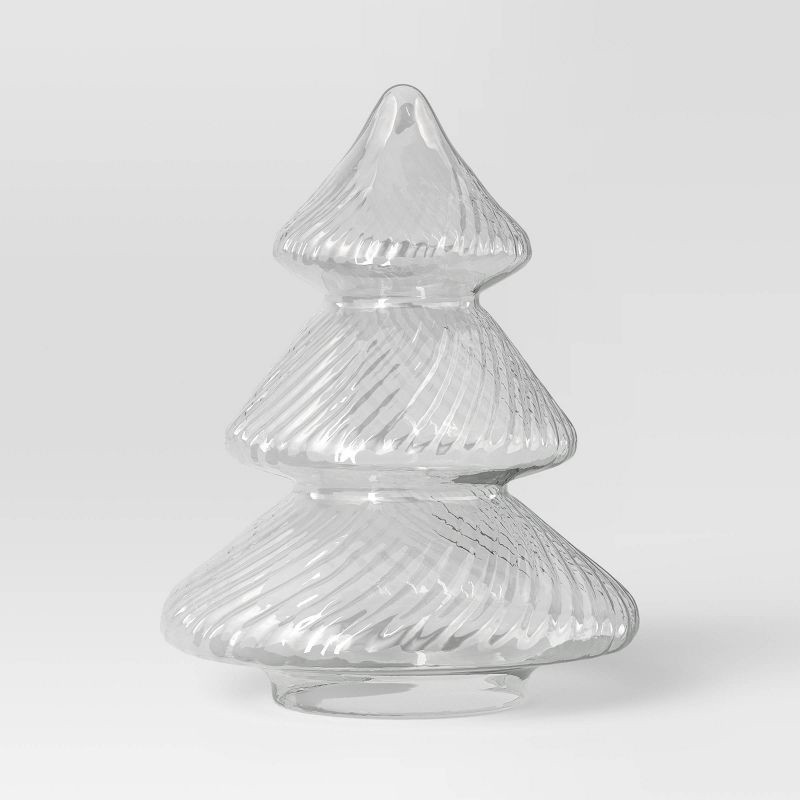Bring crystalline elegance to your holiday decor with this Glass Tree from Threshold™. This clear glass Christmas tree is designed in a six-inch, three-tiered cone silhouette and adorned with a ribbed…