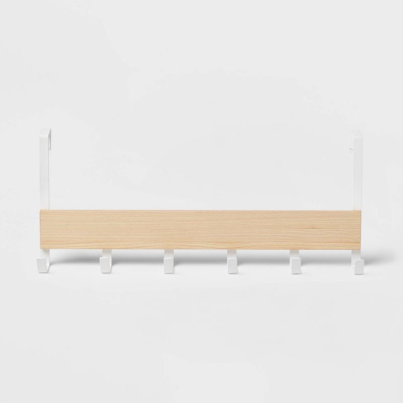 Large Over the Door Hook with Wood 6 Hooks Matte White - Brightroom™: Steel Door Hanger Rack, No Assembly Required