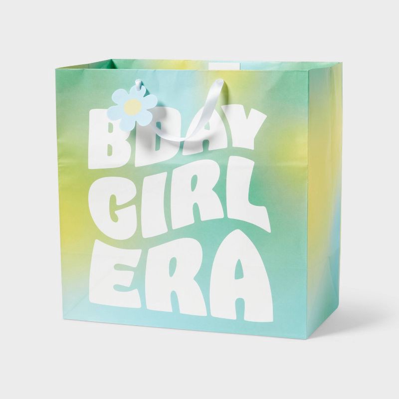 Large Square 'Birthday Girl Era' Tie Dye Birthday Gift Bag with Tag Blue/Yellow/Green - Spritz™