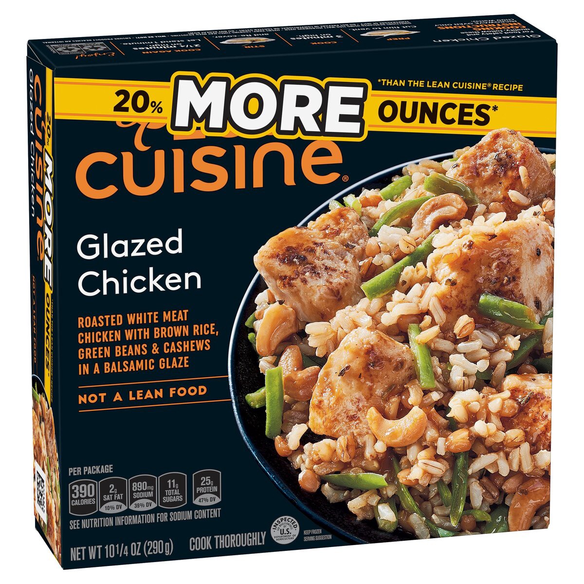 More Cuisine Glazed Chicken Frozen Entree from the makers of Lean Cuisine allows you to enjoy what you love with 20% more ounces (20% more ounces than the Lean Cuisine recipe) of deliciousness. Made w…
