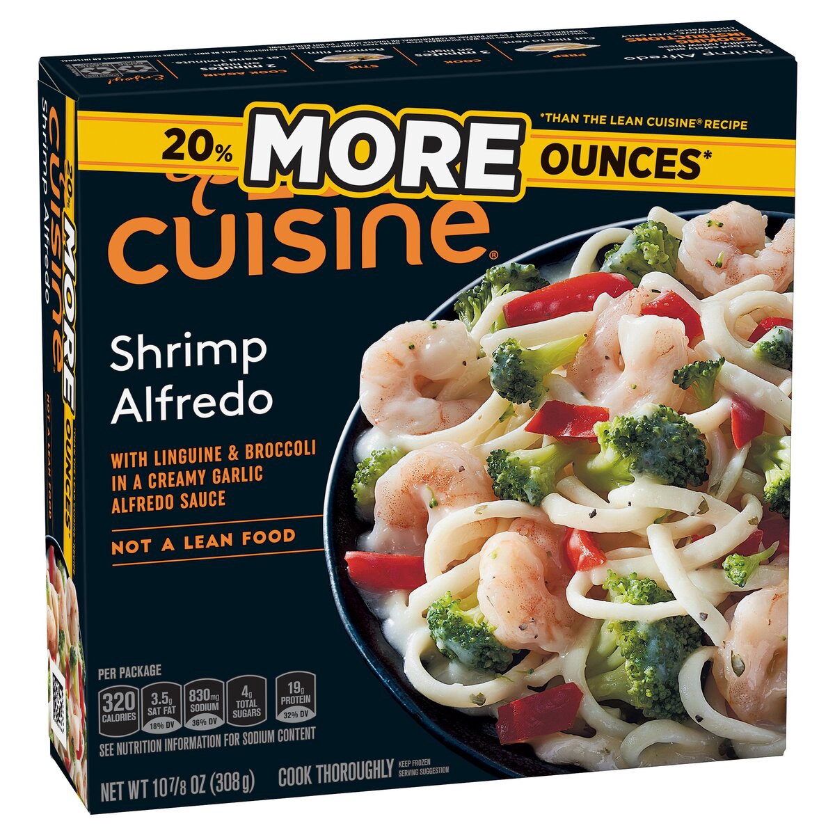 More Cuisine Shrimp Alfredo Frozen Entree from the makers of Lean Cuisine presents your favorite pasta dish with 20% more ounces (20% more ounces than the Lean Cuisine recipe) of what you love. Made w…