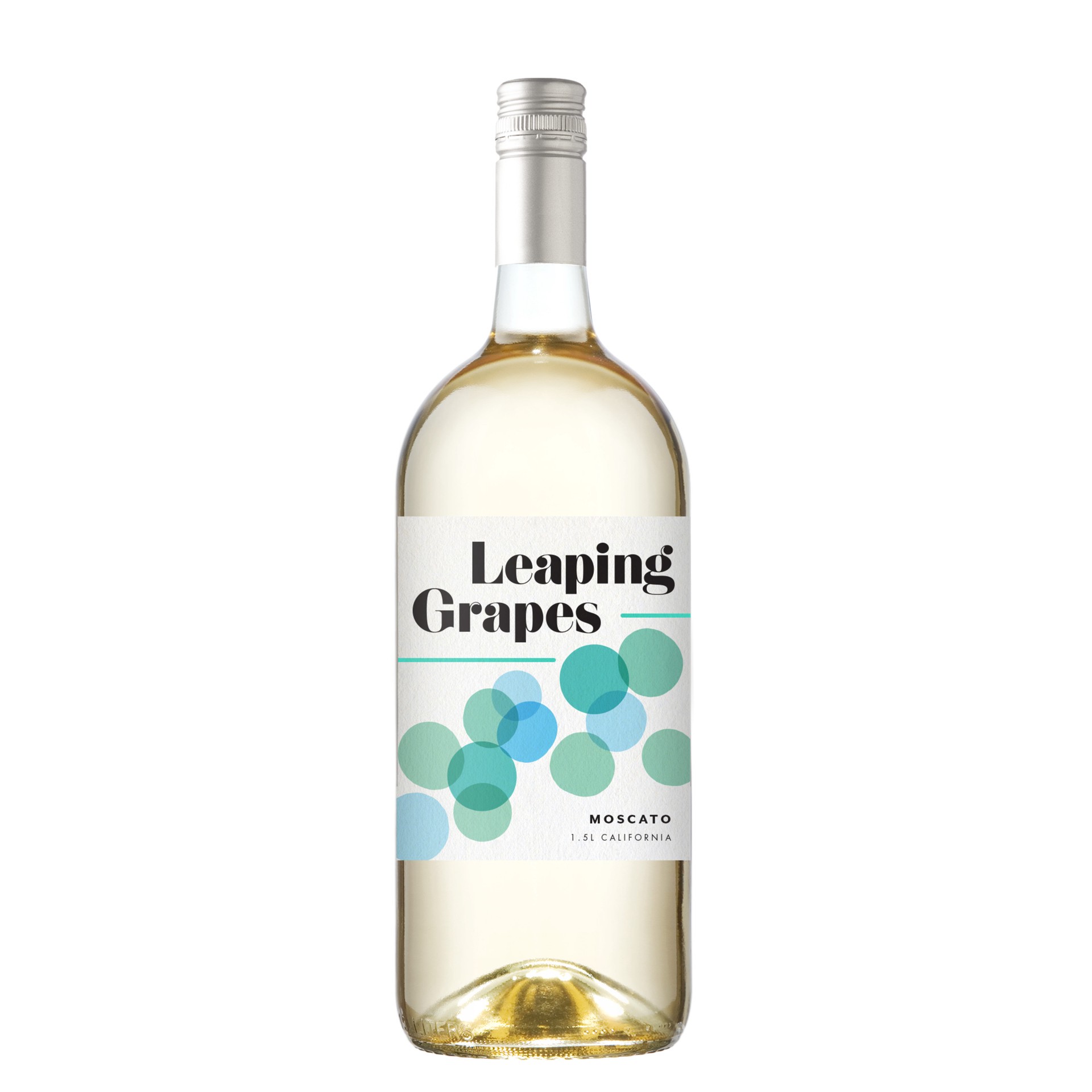 Leaping Grapes Moscato is sourced from California vineyards. This semi-sweet wine has bright flavors of white peach, pear, honeysuckle. It pairs with spicy Asian cuisine, or for something sweet – appl…