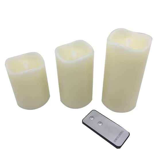 Find the LED Flame Pillar Candle Set by Ashland at Michaels. Lend ambiance to your home when you use this LED pillar candle set. Ivory. Includes 3 candles (multiple sizes). Features 1 remote. Batterieā¦