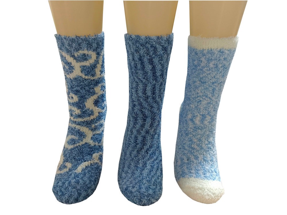 3 Pairs of ladies cozy slipper socks with non skids to be warn at home to keep your feet warm and cozy all day and night. Fun fashionable marl swirl for your feet
